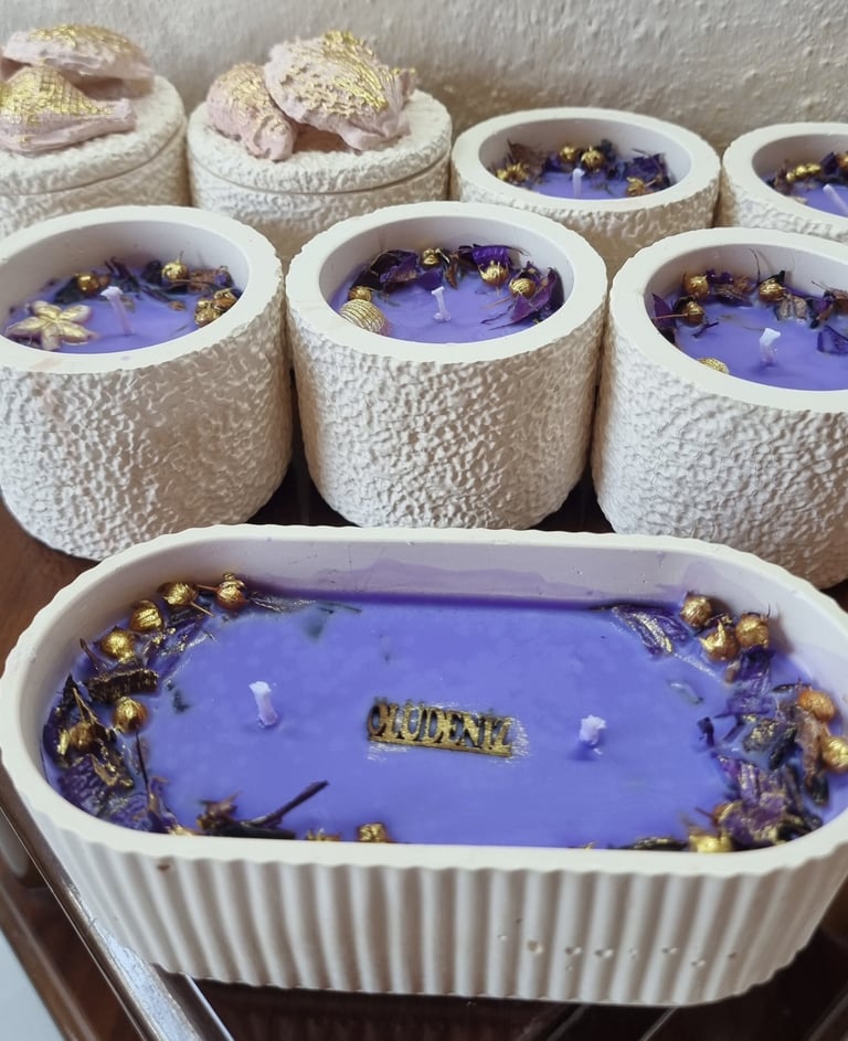 Our candles are made from 100% natural soy wax, ensuring a clean and safe burn. The containers are crafted from gypsum, and we use food-grade dyes that are completely safe for health, along with natural fragrances that enhance your environment.